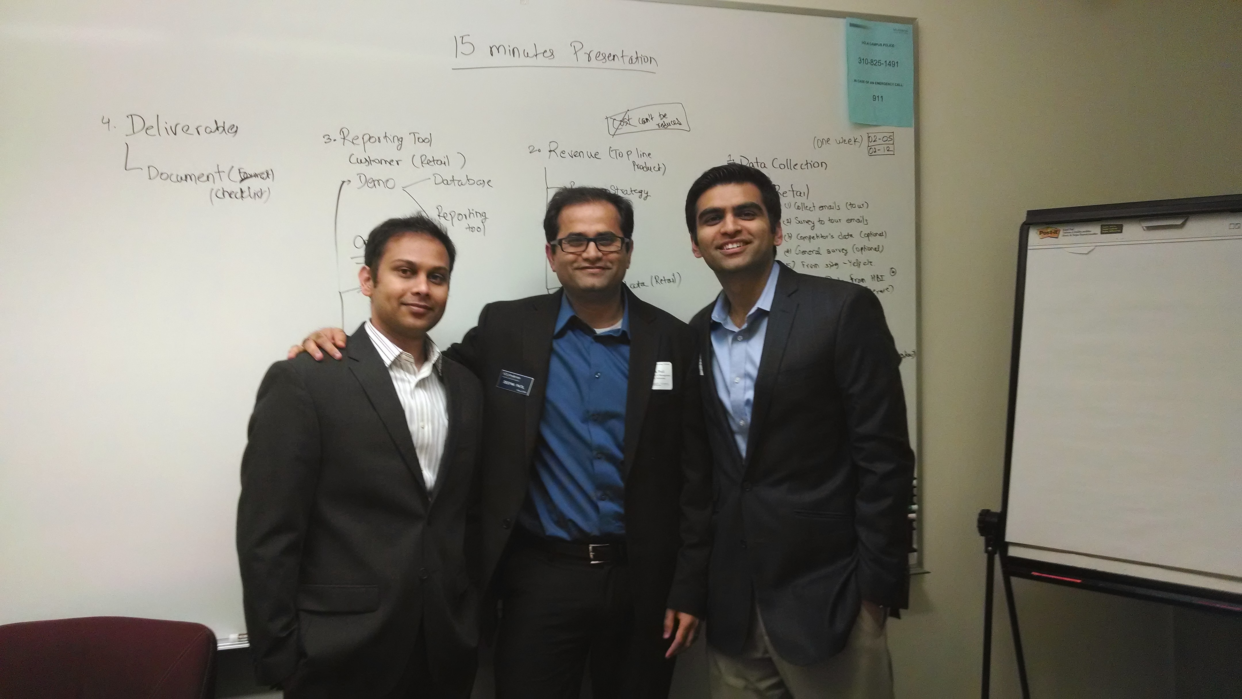 Team formation: Prasad Naik took a lead on this one and approached a few of us and convinced us to join the team, to make real impact. The final team was Prasad Naik ’16, Nihar Bhatt ’16, Anjali Purkayastha ’16, Micheal Weare ’16, Tiffany Cantrell ’16 and Deepak Patil ’16 (me).
