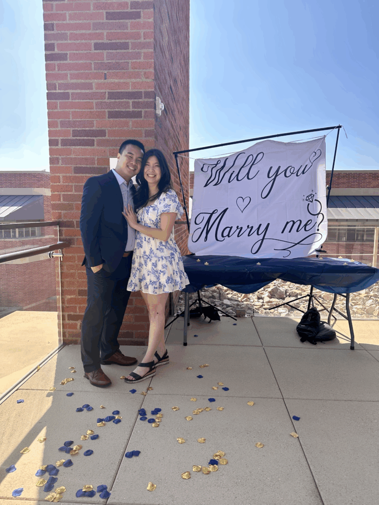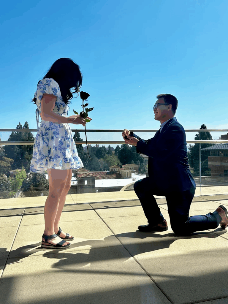 Through the challenges of pandemic Zoom life, Tiffany and Richie began dating. Richie graduated in 2021 and pivoted his career successfully. Tiffany began her MBA and went on to become FEMBA Council President and also a John Wooden Leadership Fellow. Richie’s surprise proposal happened on the balcony of the Grand Salon at UCLA Anderson, a month before Tiffany’s graduation in 2024.